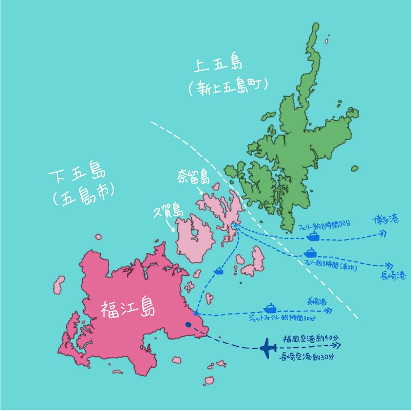 そして南北で大きく2つの地域に分かれていて、北側は「上五島」・南側は「下五島」と言われるそうです。