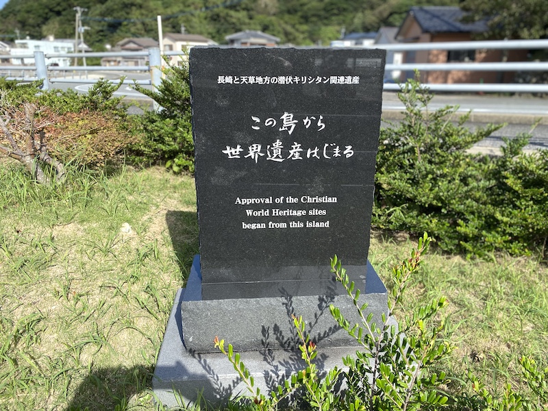 ↑「江上天主堂」の近くにある「世界遺産」の記念碑。